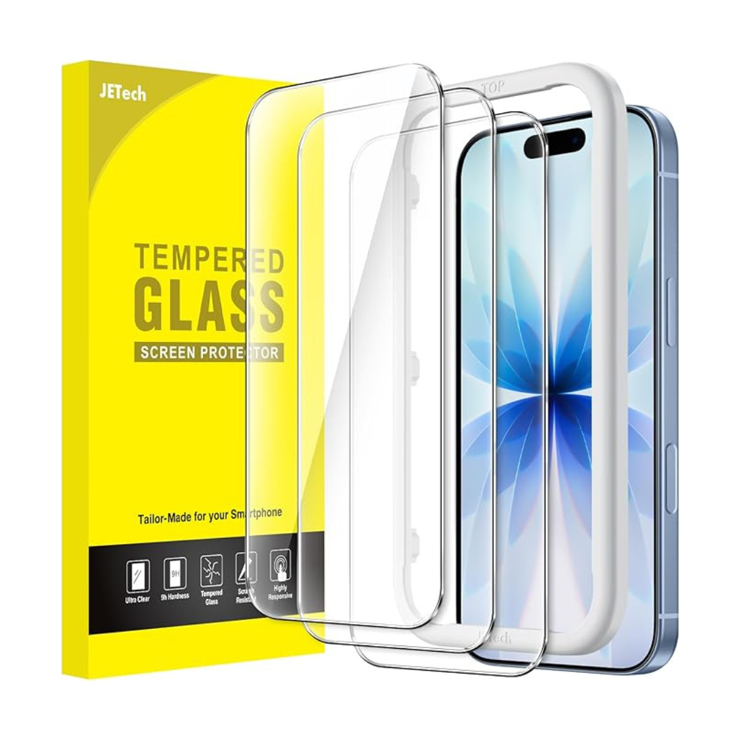Das JETech Panzerglas belegt den vierten Platz aufgrund gravierender Mängel bei Montage und Schutzleistung. Trotz günstigem Preis und mitgeliefertem Installationsrahmen häufen sich Beschwerden über fehlerhafte Anwendung und mangelnde Haltbarkeit.